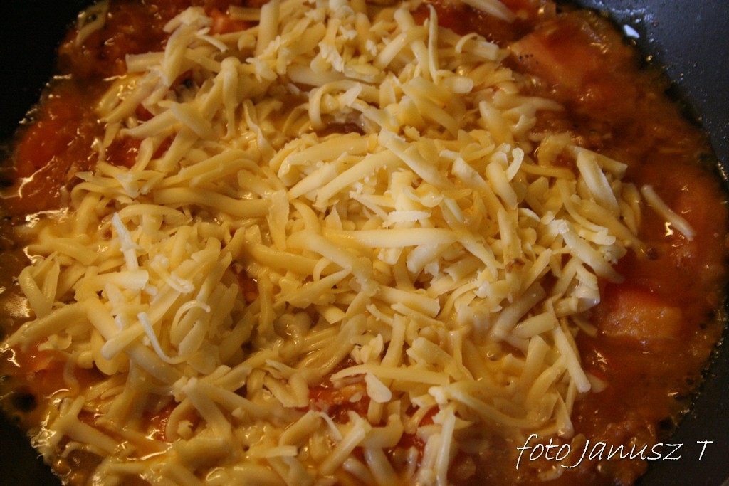By jajecznica była bardziej syta przed jajkami możemy dodać kawałek startego sera gouda.