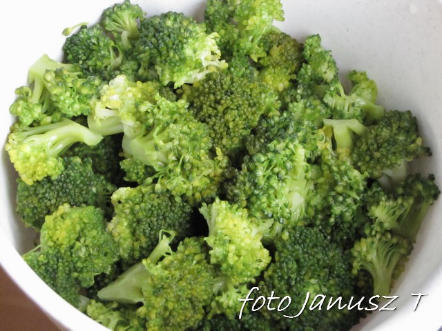 Brokuł rozdrabniamy na różyczki, po czym gotujemy przez 5 min.
